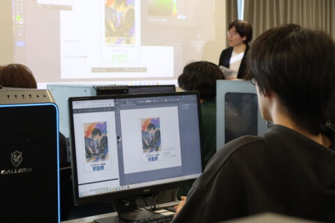 まずは配布された画像や文字の配置からスタートし、デザインの基礎を学びながら進めていました。